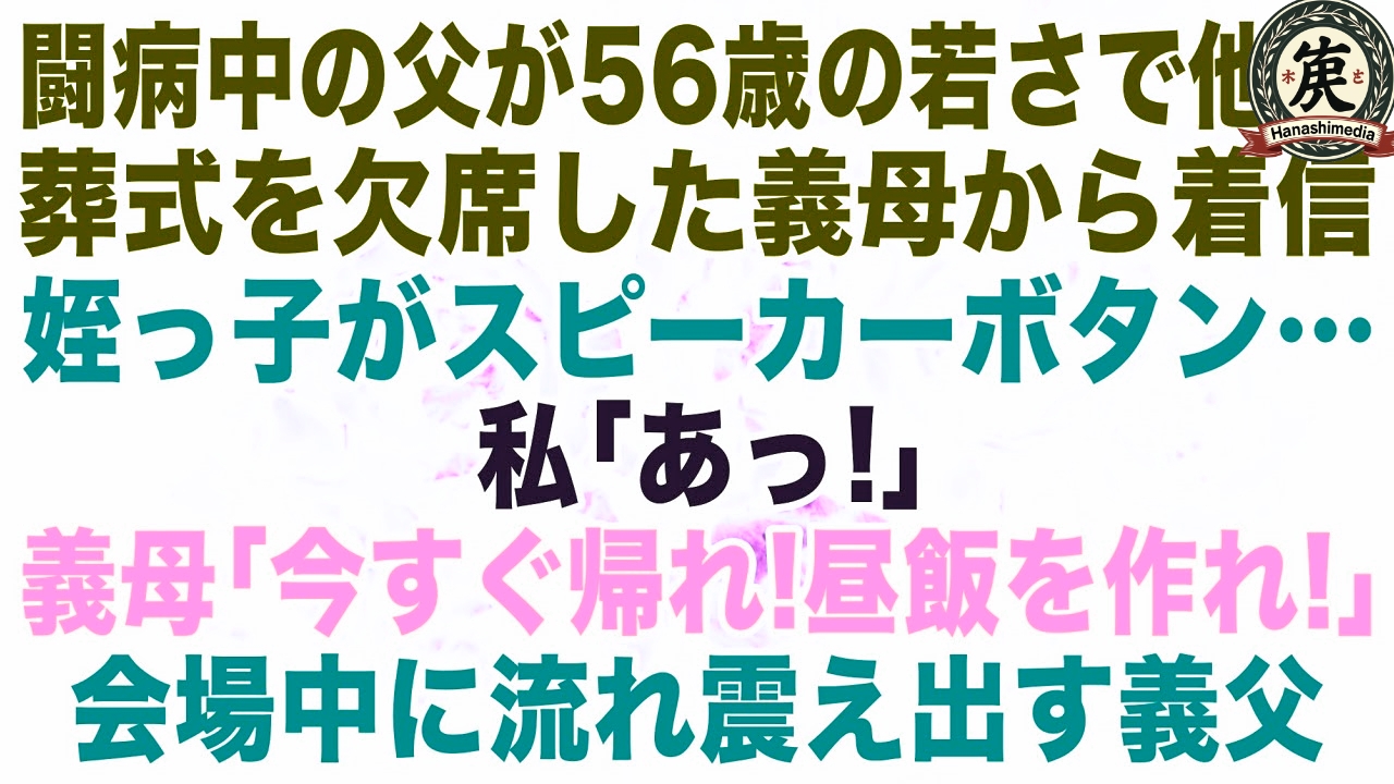 【スカッとする話】闘病中の父が56歳の若さで他界。葬儀中、式を欠席した義母から着信があり「今すぐ帰って私の昼飯を作れ!」→姪っ子がスピーカーボタンを押すと会場中に音声が流れ…【修羅場】【朗読】