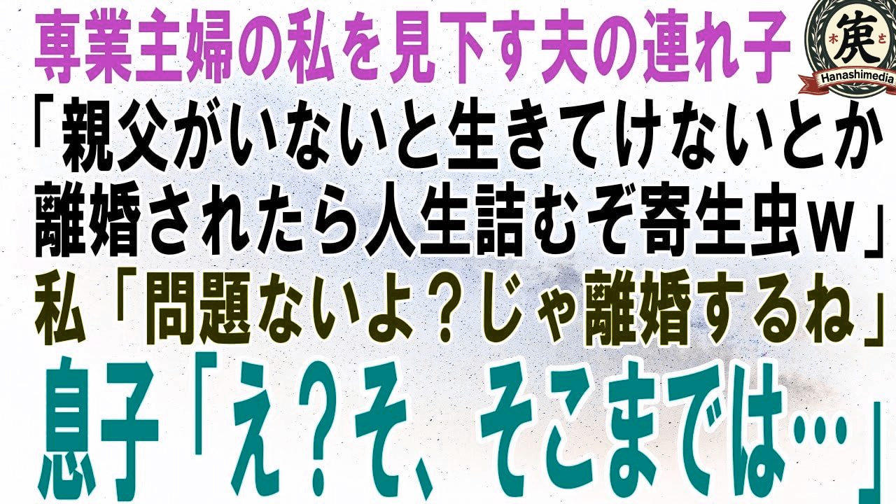 【スカッとする話】専業主婦の私を見下す夫の連れ子「親父がいないと生きてけないとか離婚されたら人生詰むぞ寄生虫w」私「問題ないよ?じゃ離婚するね」息子「え?そ、そういうつもりじゃ…」【修羅場】