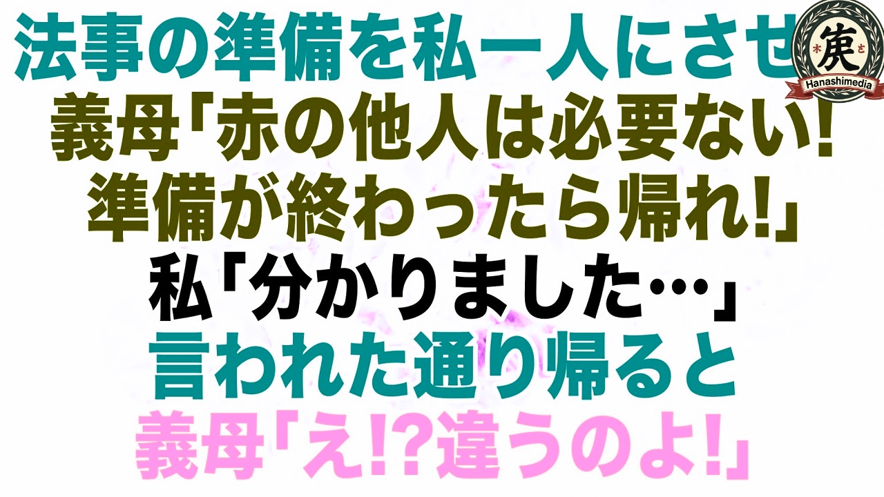 【スカッとする話】法事の準備を私一人にさせた義母「赤の他人は準備が終わったら帰れ!お前は必要ない」→言われた通りすぐに帰った。→その後、義母は全てを失い…【修羅場】【朗読】