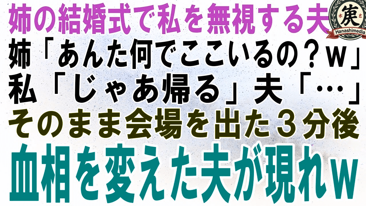 【スカッとする話】姉の結婚式で私を無視する夫。姉「あんた何でここいるの?w」私「じゃあ帰るよ」夫「…」そのまま会場を出た3分後、全速力の夫が私に向かって…【修羅場】