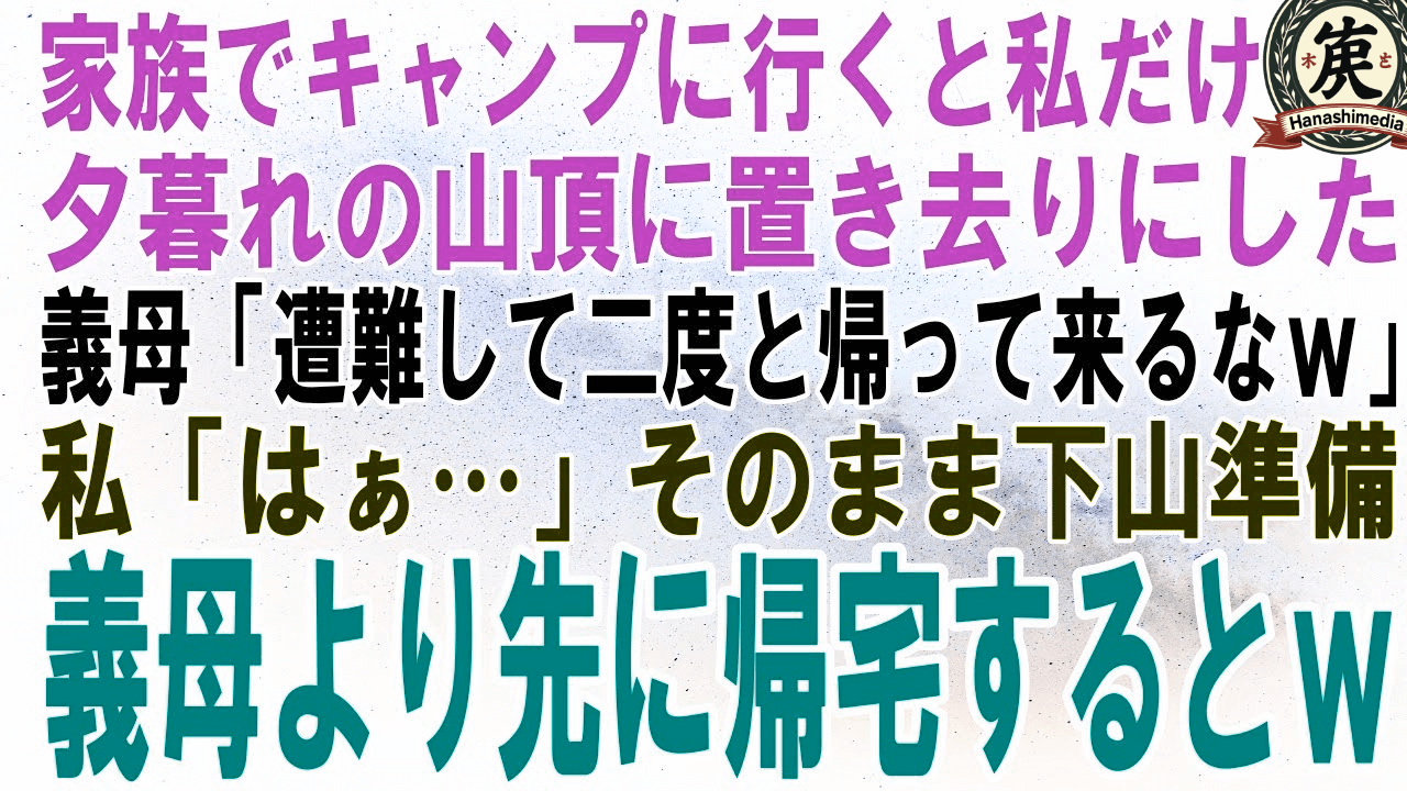 【スカッとする話】家族でキャンプに行くと私だけ夕暮れの山頂に置き去りにした義母「遭難して二度と帰って来るなw」私「はぁ」即下山準備し、義母より先に帰宅するとw【修羅場】
