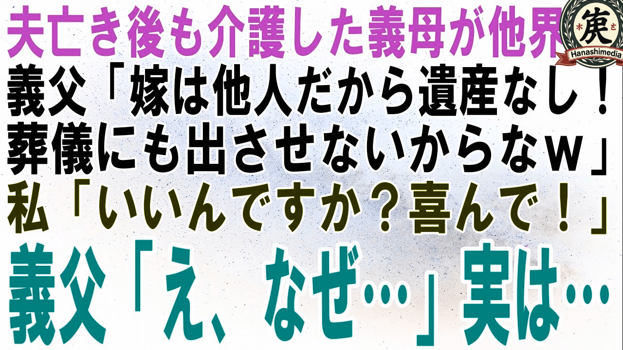 【スカッとする話】夫亡き後も10年介護した義母が他界すると義父「嫁は他人だから遺産なし!葬儀にも出させないぞw」私「いいの?喜んで!」義父「え?な、なんで?」【修羅場】