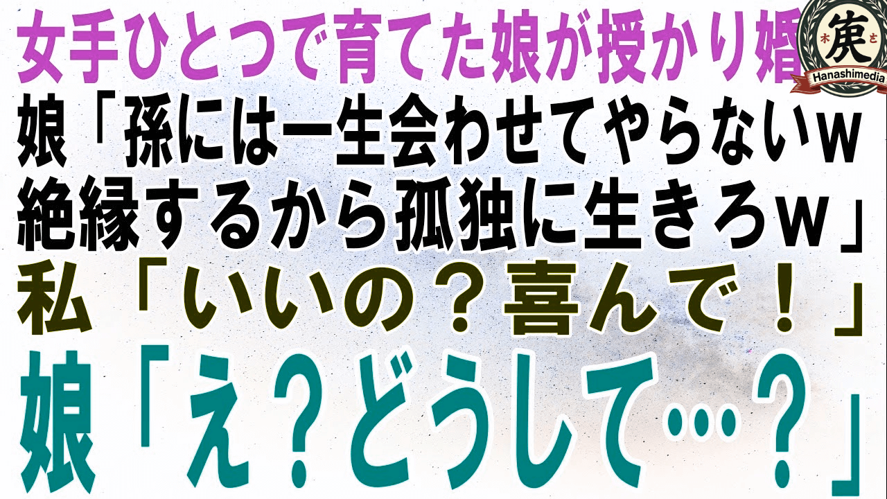【スカッとする話】女手ひとつで育てた娘が授かり婚。娘「孫には一生会わせてやらないw絶縁するから孤独に生きろw」私「いいの?喜んで!」娘「え?ど、どうして…」【修羅場】