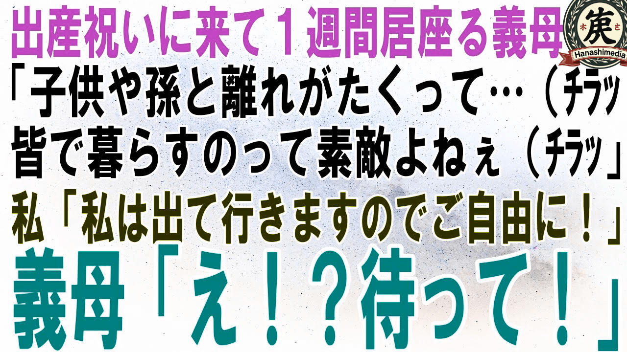【スカッとする話】出産祝いに来た義母が1週間帰らない…義母「やっぱり子供と離れがたいわ(チラッ」私「じゃあ私が出て行くので好きなだけお過ごしください」義母「え!?待って!」【修羅場】