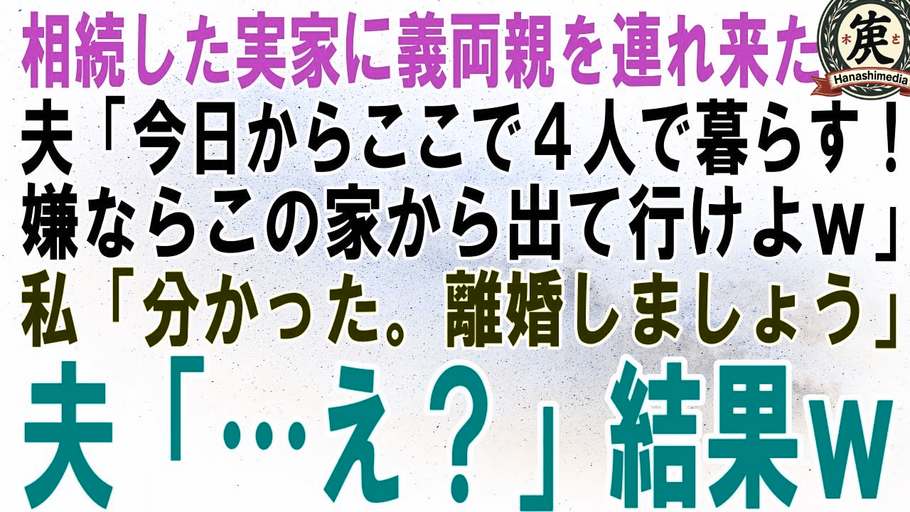 【スカッとする話】両親の葬儀後、義両親を連れて来た夫「今日からここで家族で暮らす!嫌なら里に帰れば?あ、ここが実家かw」私「分かった。離婚して実家に帰ります」夫「…え?」【修羅場】