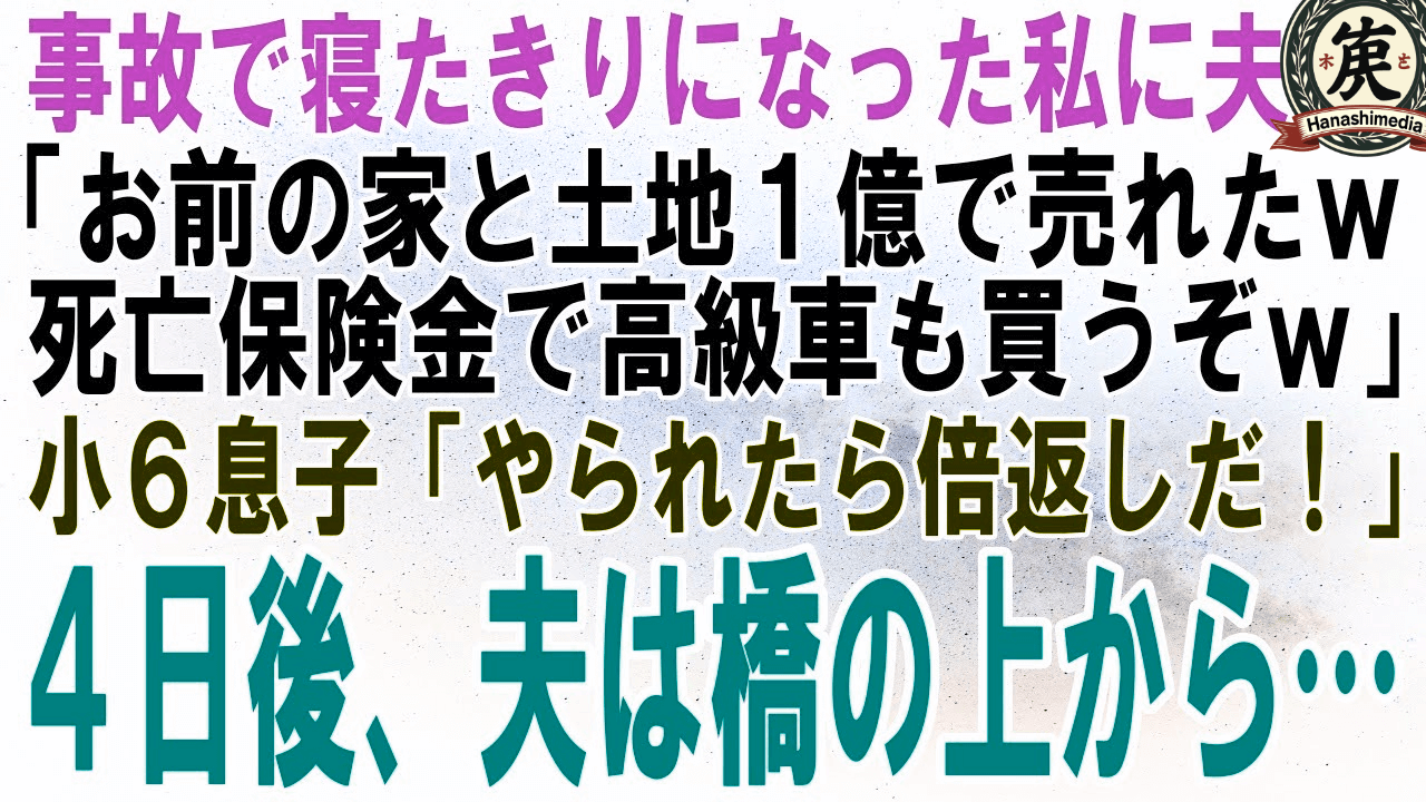 【スカッとする話】事故で寝たきりになった私に夫「お前の実家と土地1億で売れたわwあとは保険金で高級車買うかなw」小6息子「やられたら倍返しだ!」4日後、夫は橋の上から…【修羅場】