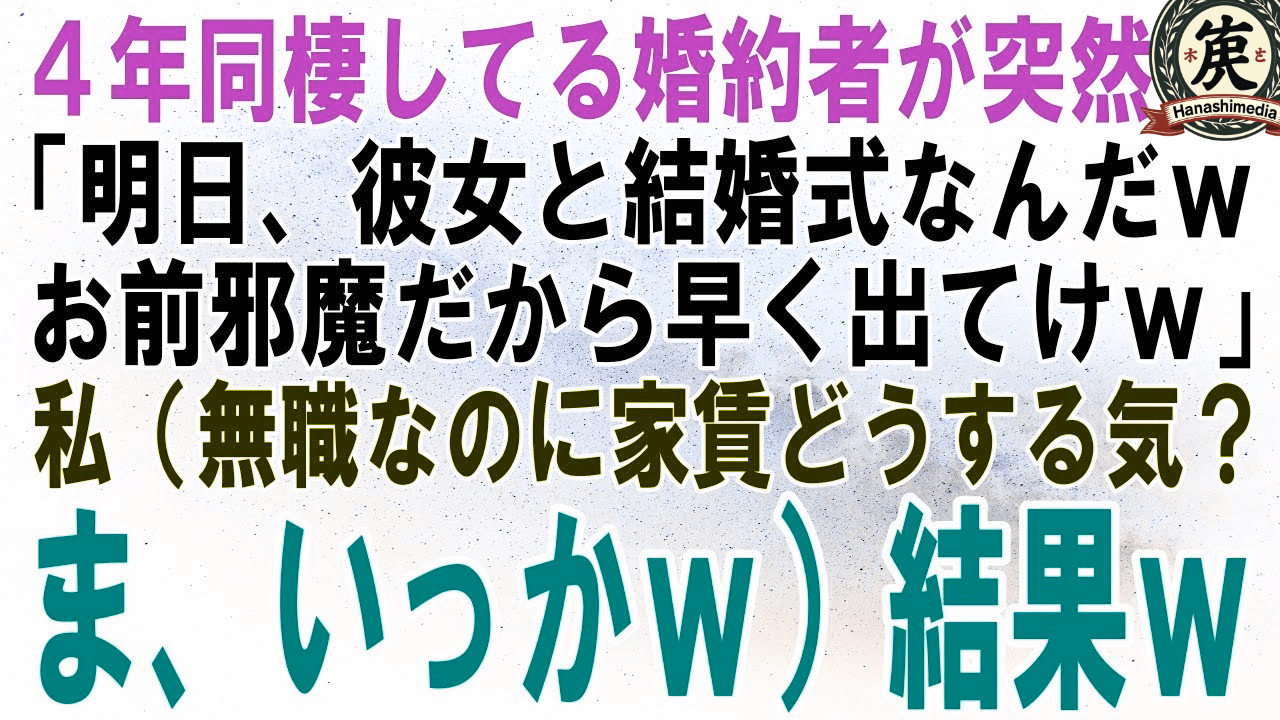 【スカッとする話】4年同棲している婚約者が突然「明日彼女と結婚するんだ。お前邪魔だから早く出てけよw」私(無職なのに家賃どうするんだろ)3カ月後、案の定婚約者は…w【修羅場】