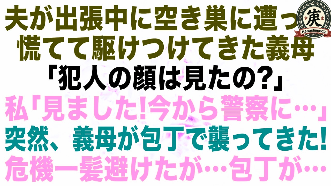 【スカッとする話】夫が出張中に空き巣が…駆けつけてきた義母「犯人の顔は見たの?」私「見ました!今から警察に…」→次の瞬間、義母が包丁で襲ってきた!私が避けると…【修羅場】【朗読】