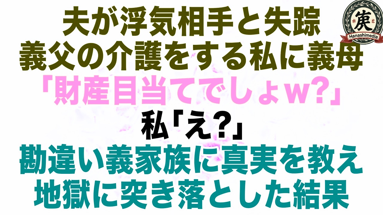【スカッとする話】夫が駆け落ちし失踪…義父の世話をする私に義母「どうせ財産目当てでしょw?」義妹「だから女つくって逃げられんのよw」→私が笑顔で出て行った結果w【修羅場】【朗読】