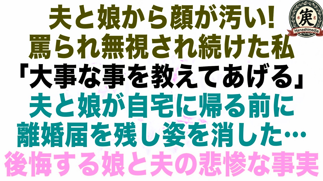【スカッとする話】夫と娘から汚いと無視され続けた私。夫と娘が自宅に帰る前に、あるモノを残し私は姿を消した…。【修羅場】【朗読】