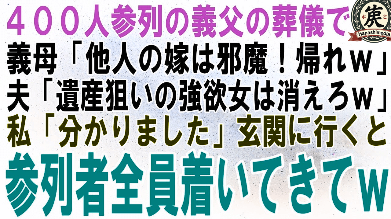 【スカッとする話】400人参列の義父の葬儀で義母「他人の嫁は邪魔!帰ってw」夫「喪主の言う通りにしろw」私「分かった」玄関に行くと400人全員ついてきてw【修羅場】