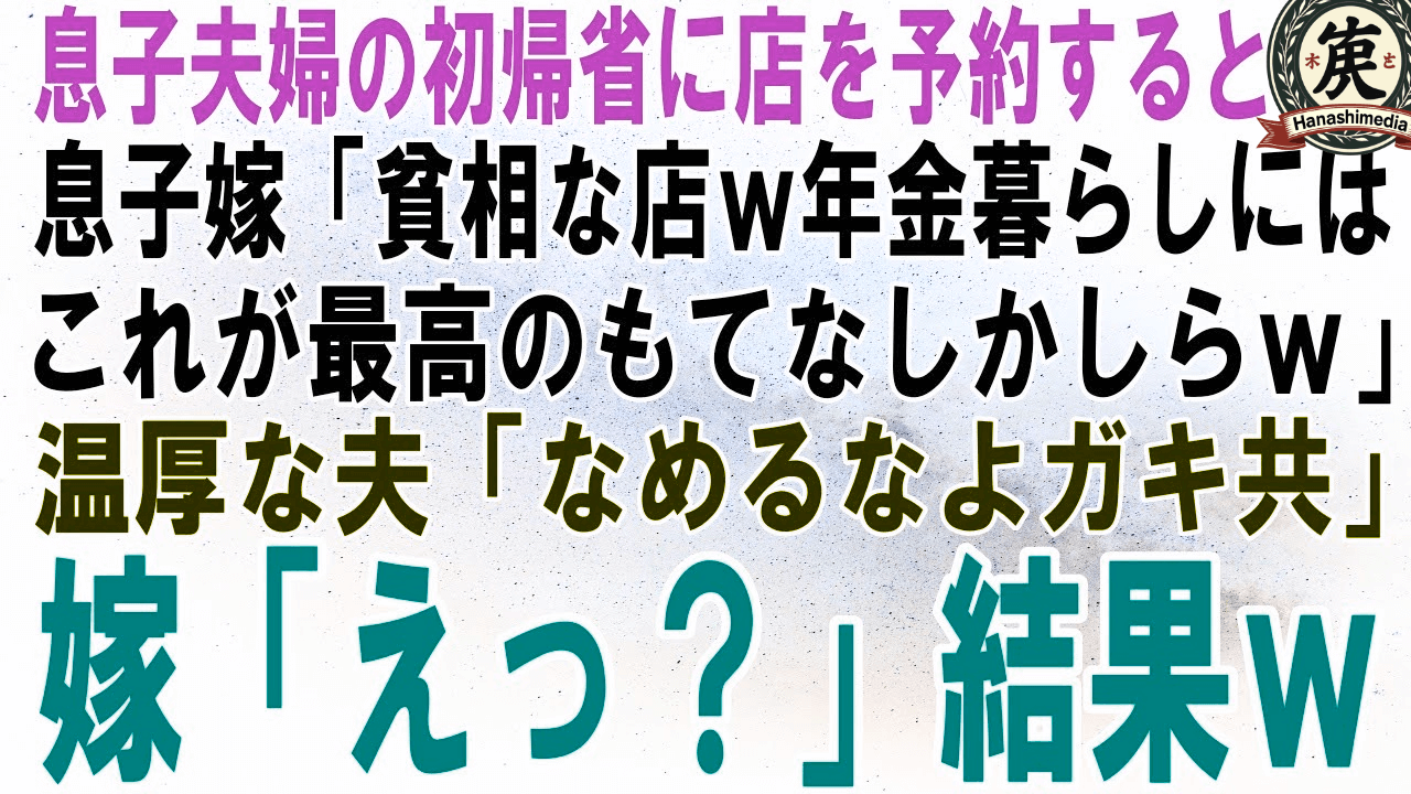 【スカッとする話】息子夫婦の初帰省に店を予約→嫁「貧相な店…年金暮らしにはこれが限界なんでしょうねw」普段温厚な夫「なめるなよクソガキが」嫁「えっ」実はw【修羅場】